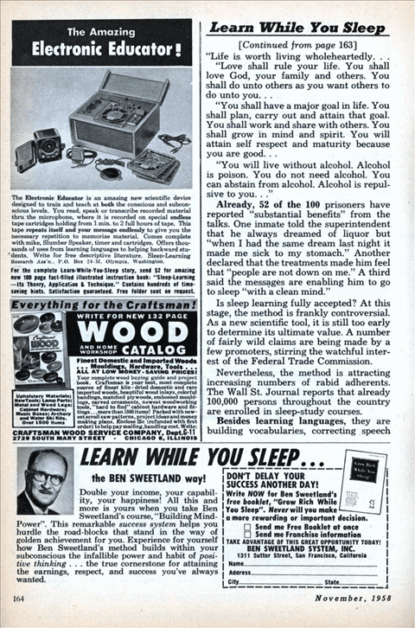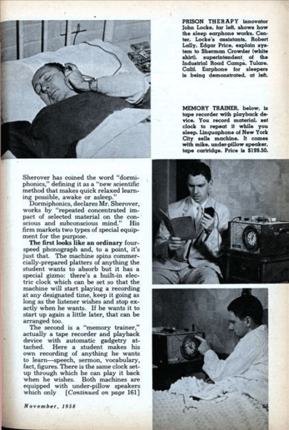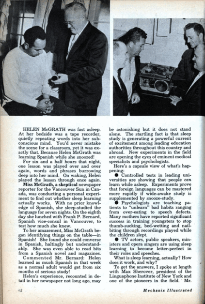 There are just so many hours in the day during which we can cram all this learning into our heads. Man has to sleep sometimes. But man might well be able to use that time, not only to refresh his body, but to amass more knowledge, more information, more skills. And in the most painless possible way!