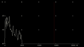 And this is the spectra of the transformed voice. Red line marks the carrier frequency (14,500 Hz).